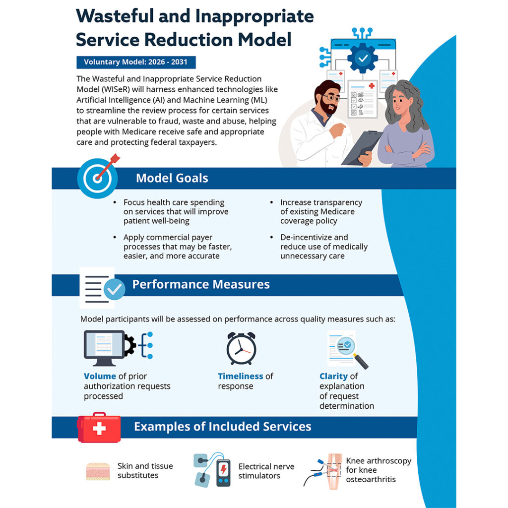 Effective Jan. 1, 2026, CMS is getting into the prior authorization business. The Wasteful and Inappropriate Service Reduction (WISeR) Model is a pilot program set to run for six years, initially in six states: New Jersey, Ohio, Oklahoma, Texas, Arizona, and Washington. It introduces new prior authorization processes for certain high-risk Medicare Part B services…